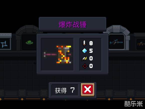 爆炸战锤是一把输出高、范围广的AOE武器,不能暴击,攻击时会在攻击处三角出现3个炸弹并爆炸,炸弹会造成8点伤害,有几率附带灼烧,配合激光加粗与散弹枪子弹增加天赋,就可以享受到一路爆炸畅通无阻的快感,十分好用。与雷电战锤各有千秋。