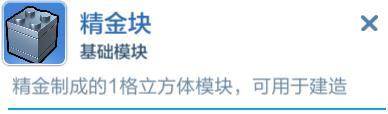 4、道具效果:精金块可以用来建造,是玩家建造坚固堡垒的重要建材。