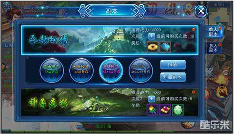 若要说《永恒仙域》世界中外表与内在反差最大的一处秘地,便不得不说说那永劫幻境的奇异。通过副本界面可以选择多种难度,点击开启副本按钮便能踏入这奇妙的永劫幻境之中。