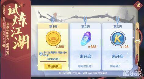 这两个车贴的字样还是比较酷的,等S2赛季到来新车出厂的时候,大家可以贴在车身上应该是比较适合的。获取方法也很简单,只要在大厅界面左上角点击“江湖试炼”图标,完成每日任务,累计完成8个挑战任务就可以领取最终的心愿车贴。