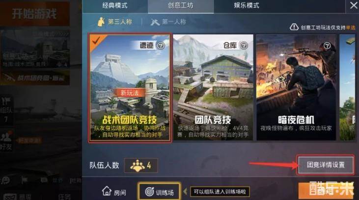 具体设置:点击创意工坊页面右下方的“团竞详情设置”,
