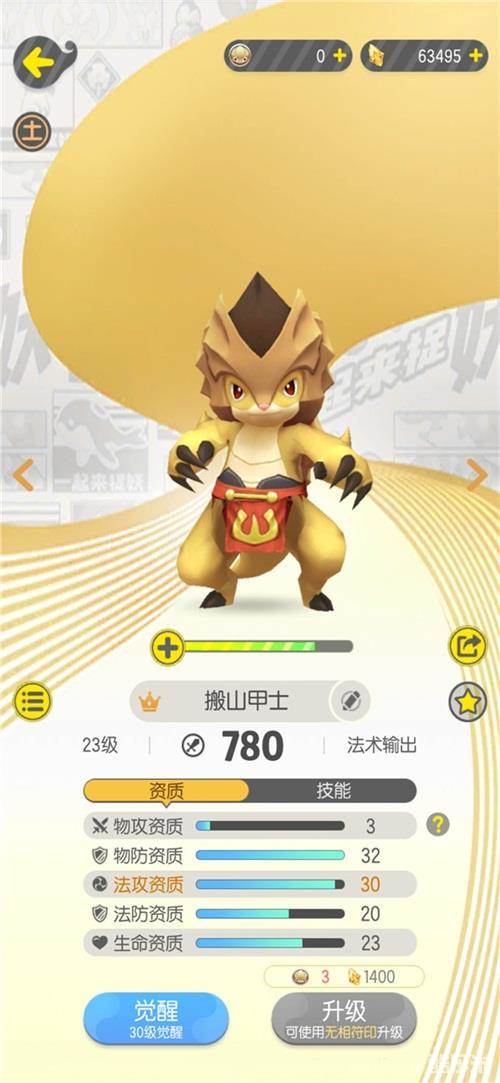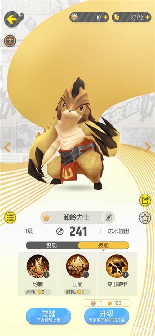 在穿山甲没有完全觉醒前,可以用来挑战试炼任务,守卫擂台不推荐,属性容易被针对。