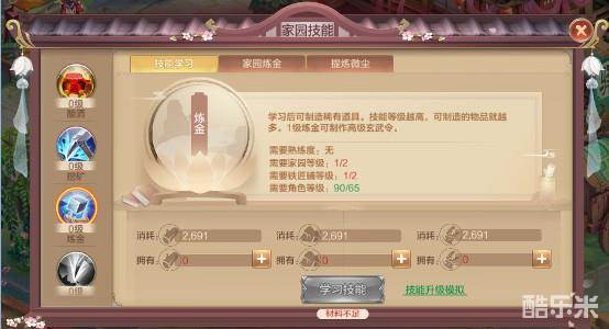 家园炼金,是《自由幻想》手游“名动天下”全新资料片亮点之一。凭借炼金技能,玩家可以把仙界微尘合成为各种珍稀道具,包括高级玄武令、鲲鹏之羽等物品。炼金技能等级越高,玩家可练物品种类越多;炼金需要消耗微尘和精力,不同物品消耗的微尘数量不同,每周可合成的次数也不同。