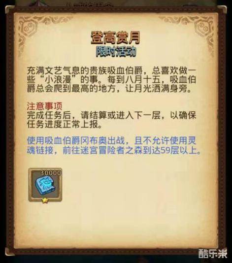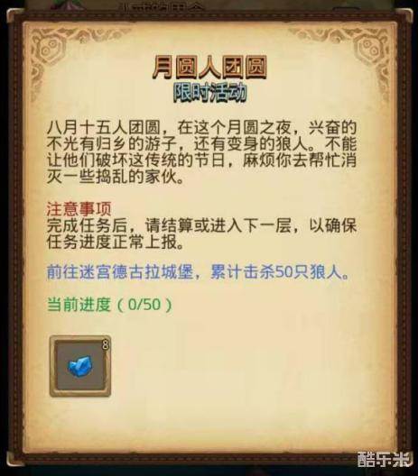 我猜这个任务是吸血鬼伯爵委托的,不过他也是为了让大家能够收货一个安静团圆的夜晚。所以,勇敢的冒险者们,快去德古拉城堡迷宫消灭狼人吧,据说他们在月圆之夜的能力会大幅度的提升哦!