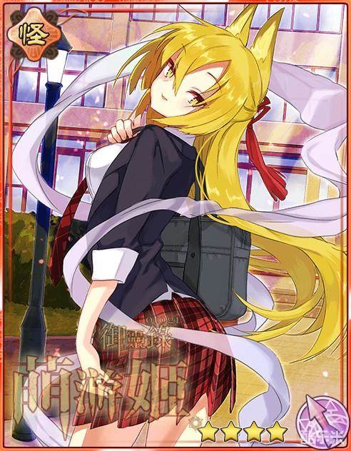 简评:身为みよしの的兽耳娘军团中的一员,妲己大姐姐的卡面非常的好舔,金发狐耳水手服w;妲己的双围在四星后排中算是非常优秀的数值,一定意义上弥补了这张卡没有被动技能的缺点;主动技能是对两名HP最低的敌人造成小量伤害,并提供百分比受到伤害上升的Debuff,但是往往HP最低的敌人都是后排,除非是为了补刀,一般情况下建议搭配后排范围技能打出爆发伤害;这个技能有较长的前摇,并且技能伤害不是很高,补刀的手感稍微有些糟糕。如果卡组里需要伤害加成的Debuff,并且配备后排高伤范围攻击的话,妲己大姐姐还是非常不错的选择。