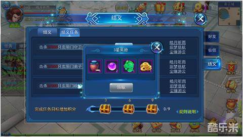 游戏中最多支持三人结义,结义后可以获得额外奖励并进行结义任务特殊玩法。结义玩家可以使用一键组队功能快速组队,结义玩家组队完成结义任务时能够共享结义任务中指定怪物的击杀数。