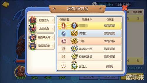世界排名:按照对BOSS的伤害量进行联盟的世界排名,最强联盟在哪里一目了然~