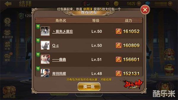 开启结拜系统后,玩家还需满足一定的条件——结拜三人需互为好友,且均已开启结拜系统,并在同一场景中。当满足条件后,队长即可创建结拜队伍,进行结拜仪式。