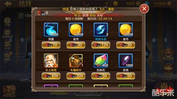 不仅如此,结拜后的玩家还可领取额外的活跃度礼包,完成日常任务即可获得。另外,玩家和结拜好友共同参与神之猎场挑战,也可获得亲密度。当亲密值累积达到一定数值后,结拜队伍的“齐心协力”等级将会得到提升,并可增加角色的攻击、防御、生命值等多项属性,提升战力。