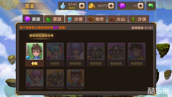 点击菜单-图鉴-英雄,您就可以看到可以与您一起并肩战斗的英雄页面。点击英雄,即可进入英雄属性页面。英雄有血量、攻击、防御、三个基本属性,随着英雄们的等级、强化等级以及星级的提高,英雄的基本属性都会得到相应的提升的。目前按照英雄的稀有程度分为1星到5星,星等越高能力越强。