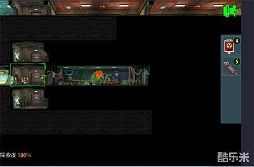 击杀怪物,拾取资源前行至图③位置,还是固定辐射房间,电梯下行。先往右走,遇见一只大怪,击杀后继续往右,到尽头折返。