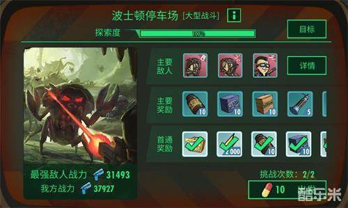 波士顿停车场,是第一个具有战略意义的大型副本。里面获得的螺丝是主战队伍升级装备,生产队伍升级工具的关键材料,直到中期都会不够用。而摄像机也是战斗队伍升级装备关键材料。这些材料不够用的话会卡我们的战力。能早日通关波士顿停车场,每天利用搜索功能为我们自动获取材料,我们的开局就打下了良好的基础。