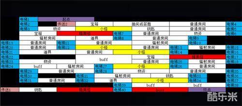 如图,每个小怪房间都有一条带辐射的狗,会给我们的前排或中排靠前单位带来很大的麻烦,在没有辐射治疗医生的情况下,我们前排的血量要十分厚实,同时输出要足够给力。前面的路线建议大家一直走右边电梯下楼梯,全图会拾取到9绳子9雷达,辐射房间不要硬闯(即使里面有闪闪发光的东西,我们的目标是通关),利用绳子跳过。当前排辐射值到达二分之一左右的时候,我们可以先略过小怪(利用绳子雷达),直接走到倒数第二层的消除辐射buff房间里,吃掉buff清除辐射,先打掉最底层大boss与小boss夺旗。然后回头收拾掉带辐射狗的小怪,这样最合理利用了唯一一个清辐射的buff。