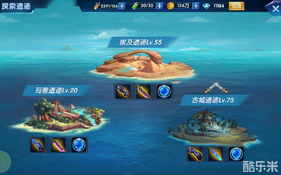 等级有了,那么就需要开始搞装备了,装备可以在探索遗迹中获取,每天都有免费的探索次数,探索完可以领一个宝箱,能开出紫装,橙装和武器保护装置。