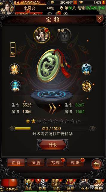 在游戏中,宝物系统由血符、神盾、龙魄、魂珠四大板块形成,激活它们能给角色带来强大的属性加成。