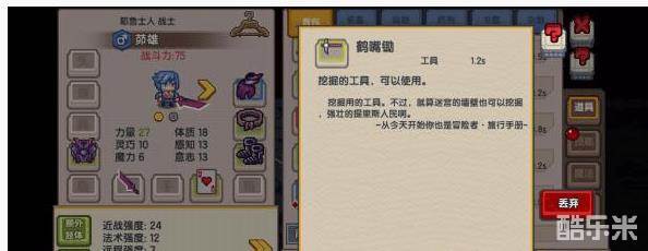 实际上,矿洞的一些墙壁是可以砸开的,打开背包,找到里面的鹤嘴锄。点击使用后,在游戏界面上就会出现可以去除的墙壁,也就可以打开通往下个区域的入口。