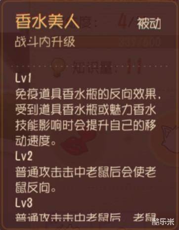 4级推荐:点出被动技能“香水美人”2级,干扰老鼠行动,可以更好的抓捕老鼠。