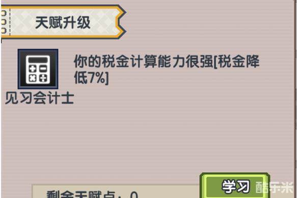 最后五级天赋选择“见习会计师”降低税金,注意这里一定不要选择“孤高”,钢琴师并不适合战斗,他非常依赖队友哦。