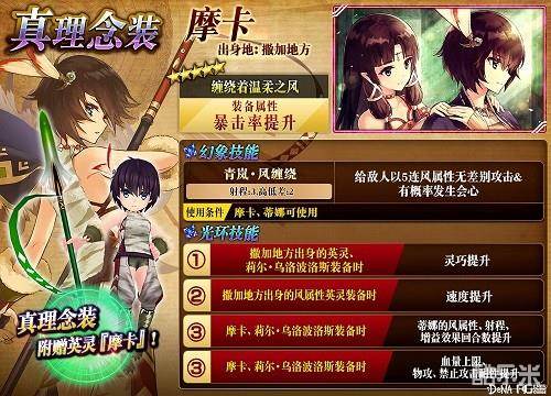 ※首次获得真理念装『缠绕着温柔之风』时,可以获得限定英灵『摩卡』(★★★★★),仅能获得1次,重复获得时不会获得英灵也不会转换成魂之碎片。