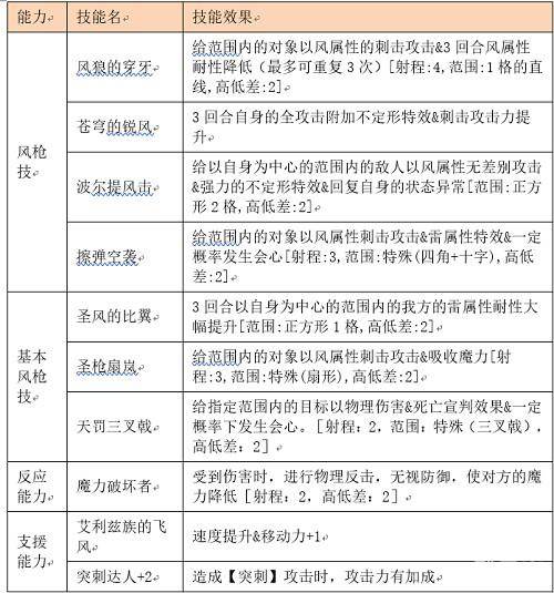 推荐支援能力:艾利兹族的飞风(第1职业:白羊座风枪士)