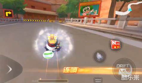 之后的大弯道就利用拖漂就可以顺利通过,因为接下来都是这种直道加连续性弯道的组合方式,所以小编的推荐是在弯道处利用拖漂积攒氮气,出弯之后注意一下回拉车头,因为连续性的弯道对玩家方向的掌握要求还是比较高的,而在直道处就使用反向集气的技巧快速积攒氮气。