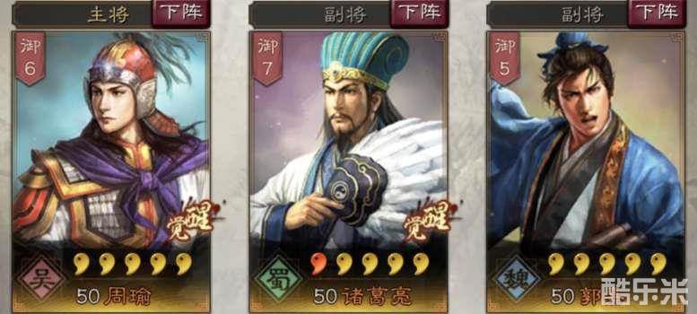 周瑜和诸葛亮拥有高额的谋略输出,并且诸葛亮还能限制敌军发挥,配上郭嘉保护主将周瑜让周瑜免控减伤可以保持稳定的输出,同时还能保证周瑜的生存避免在战斗中被爆发带走。
