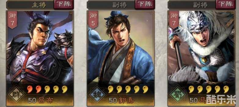 2. 后期组合:吕布+郭嘉+马超(统御19)