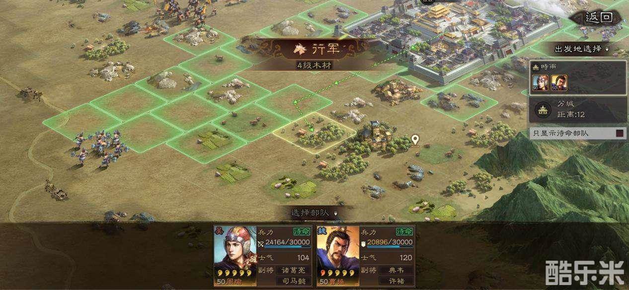当主公遇到“木牛流马”时,可以派出部队行军至木牛流马的路径上等待,当木牛流马靠近部队后就会自动进入战斗。