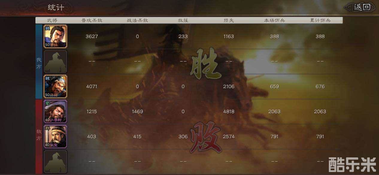 战斗结束后系统会自动结算战损,主公可以在主界面的左下角打开战报,在战报界面选择统计来查看战损与杀敌情况。如果想看看在每个回合中武将的行动情况也可以选择详情来查看详细战报。研究战报可以有利于主公调整自己的部队,在细节中也能发现部队是否存在问题。