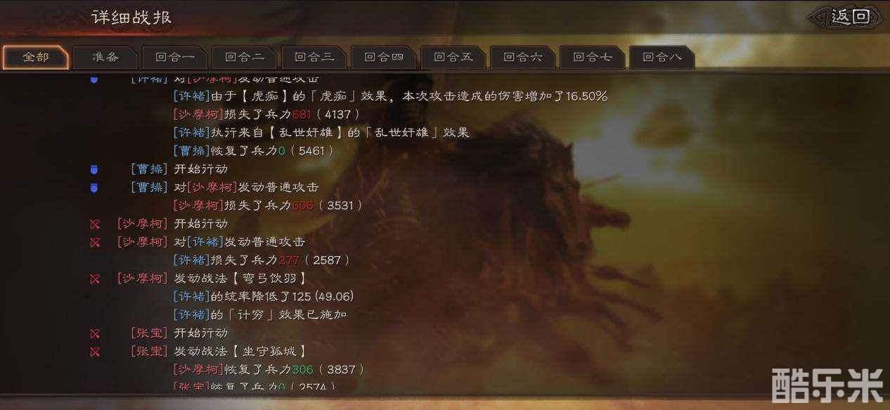 当触发战斗后,部队会经历一个战斗过程,从准备回合开始,一直战斗到第八回合结束或者敌军主将阵亡。