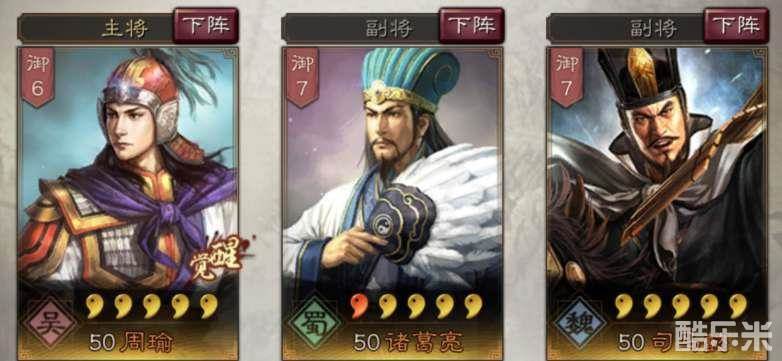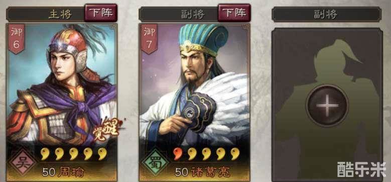 在前期统率不多的情况下不妨尝试以2个强力5星将组合为搭配,诸葛亮作为副将能输出能控,配合周瑜输出爆表。