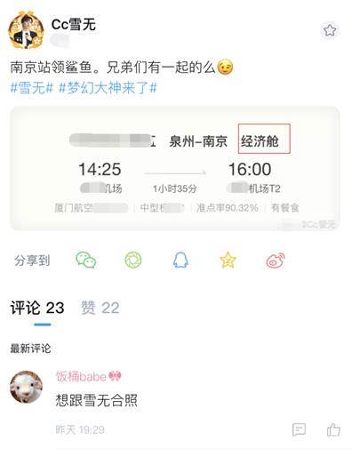 主播出行有多低调?雪无坐经济舱,大司马买二等座,冯提莫买站票