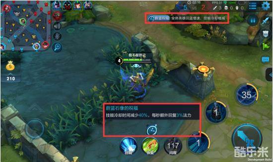 ① 蔚蓝石像的祝福:所有英雄技能CD减少40%,回蓝每秒增加3%——所有英雄直接到达CD上限,能随意释放技能,算是个小无限火力。