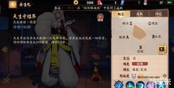 天生被动——天生牙结界,能够在收到致命伤时获得20%的移速加成以及1.5秒的无敌时间,这个技能能够让杀殿在任何时期都拥有不错的保命能力。在前期可以仗着自己的被动越塔杀敌,后期可以斩杀ad后全身而退,可谓相当的强势。150秒的cd不算太长,大佬级的杀殿总能卡住这个cd期让自己每一次都有惊无险的活下来。