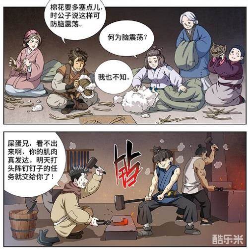 和主角时江一起从废印村来到泰岳门,没有战斗力,但是张二七的裁缝技术以及王屎蛋的打铁技术了得。在攀爬通天涯过程中,主角小队一行就是依靠着王屎蛋和和张二七打造的工具,一行,才成功爬上通天涯度过第一关。