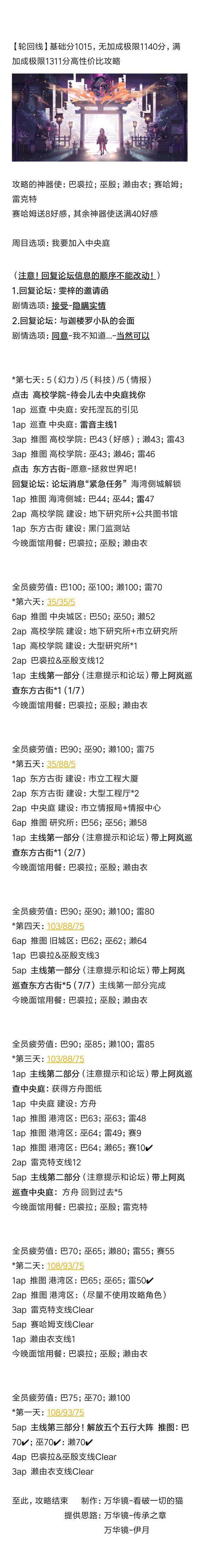【轮回线】基础分1015,无加成极限1140分,满加成1311分极限高性价比攻略(点击图片查看高清内容)