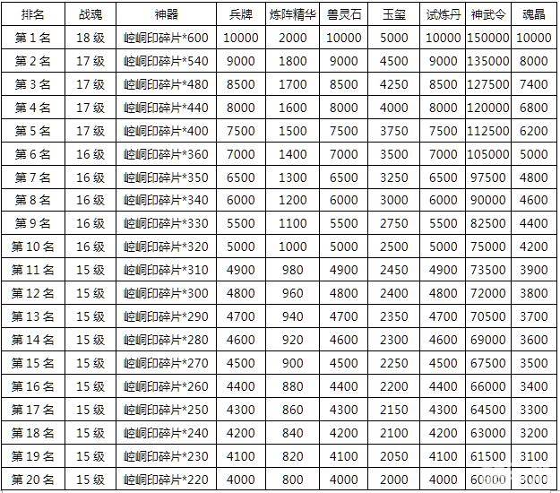 (3)活动期间累计充值没达到20000金币,则只会获得玉玺、试炼丹、神武令、魂晶原石奖励;