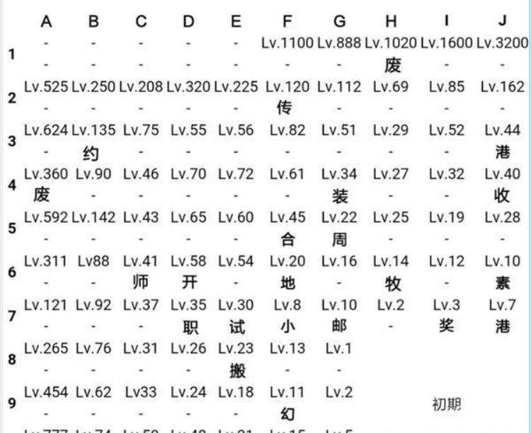 Lv162-250区域(最高Lv320)开放区域60个(和平度69%)