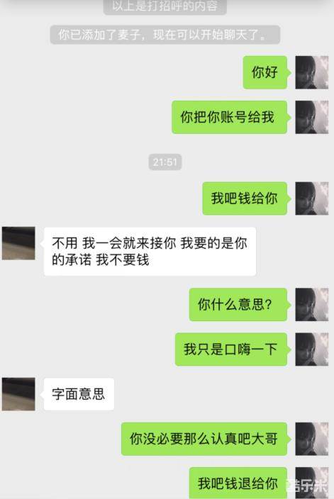 女主播事后加了“收割麦子”的微信,说要把钱退给他,但是对方并不接受。