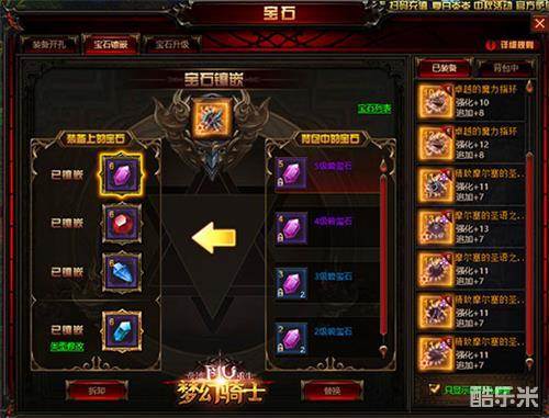 在每一件装备上镶嵌上一块又一块闪亮的宝石,将带给装备更大的提升空间,让玩家获得更多属性加成,这就是塔人《奇迹重生:梦幻骑士》宝石玩法的魅力所在。收集宝石,装备开孔,宝石镶嵌,升级宝石一套流程下来,一件顶级又华丽的装备从玩家手中诞生。