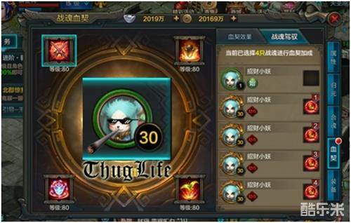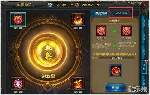 战魂血契可以设定4只战魂为血契战魂,按百分比给主人增加物攻、法攻、物防、法防和生命值属性,在此之前只有出战的战魂才能激活血契效果,如果要练招财小妖赚铜钱的话,只能出战属性很低的招财小妖,那么就无法获得主力战魂增加的大量属性了。现在将出战的战魂和血契战魂进行分离,在战魂血契的界面增加了血契效果和战魂驾驭标签,玩家们可以自由选择4只出战的战魂和4只血契战魂了,即使再练小妖或者是出战的战魂在战斗中阵亡了,也不再担心从血契中获得的属性会降低了。