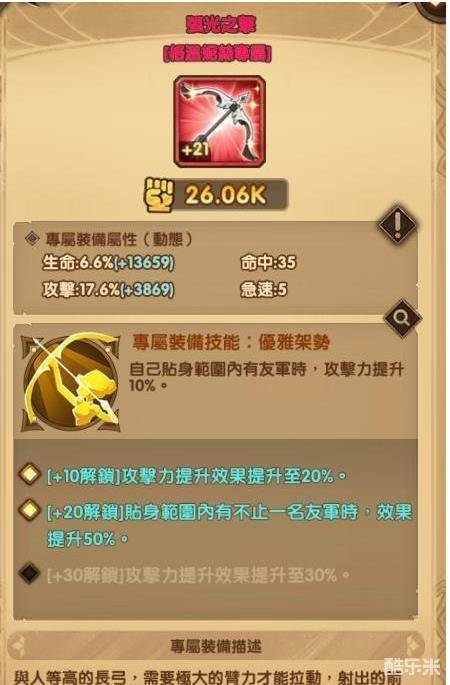 等到光弓上红以后,可以解锁专武的使用权,再花费20个紫秘符能拿到她的专武