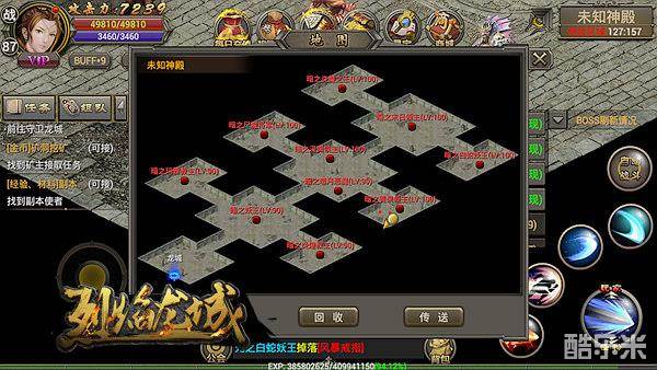 8.到达70级后,前往未知神殿抢杀低级BOSS,提升自身装备为快速升级做准备,多余的装备还可以回收获得大量经验!