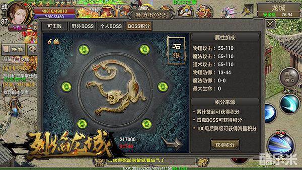 9.激战BOSS系统,每天根据自己的等级击杀野外BOSS、个人BOSS,爆装备的同时,还能获得BOSS积分增加战力!
