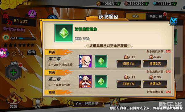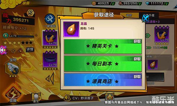点进角色信息,进入装备强化界面,点击右下方的装备晶块图标即可打开简略的扫荡页面,在这里就可以快速获取装备升阶晶体,顺便获得龙晶,比直接去精英副本翻页点击快了不少,几分钟就能赚取大量龙晶了!