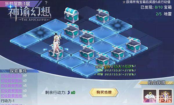当第一层10个宝箱都拾取后即可奖励5点行动力并开启第二层宝箱,奖励会更加丰厚!