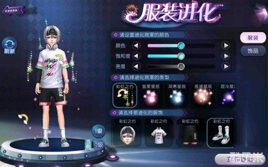 此外,《劲舞团》手游还为玩家们准备了同样朝气满满的【彩虹之约】系列服饰。女款服上身是绚烂夺目的彩虹五分袖T恤,配上高腰的白色百褶裙以及半马尾,活泼少女气息扑面而来。
