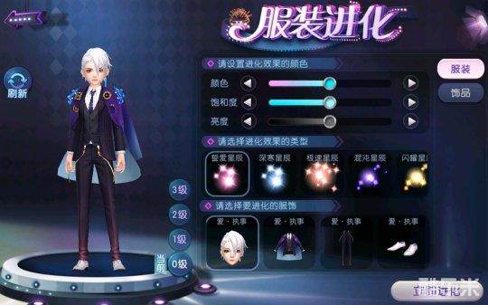 而男款服饰【爱·执事】的蓝紫色渐变西装外套神秘高贵,肩部还附有蓝色叶子装饰点缀,单边的垂款耳环时尚无比,整体有着盖不住的高冷格调。