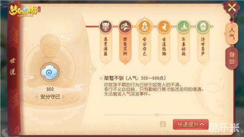 在游戏中,人气值的高低将直接影响少侠的游戏体验。选择行善之道的少侠,走在路上,会得到三界生灵的温柔以待。此外,少侠的人气值越高,也越容易触发一些稀有的奇遇,了解更多三界秘辛。若是少侠经常惹是生非,不仅会遭到路人的鄙视,被禁足参加某些活动,还可能被官兵追捕得鸡飞狗跳!所以,虽然少侠可以在游戏中自由选择为人之道,但从善才是行走三界的上策。