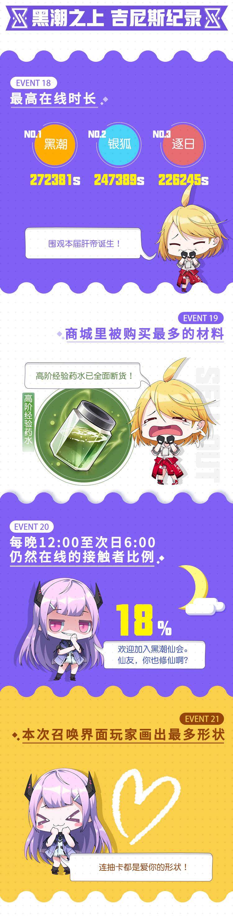 6天时间里,数以千计的先锋接触者加入到对抗黑潮灾难的队伍中,旷日持久的战斗累计高达19916小时,消灭了466652只深渊怪兽,大部队成功挺进到了2-1关。接触者们多来自江浙和广东,男性玩家阵容庞大,而11%的女玩家也为这个世界献出了宝贵的力量。接触者们在对抗黑潮的战斗中,人均消费了82541游戏内金币,率先通关的高级玩家不禁留言:“拯救世界,果然需要‘钞’能力!”